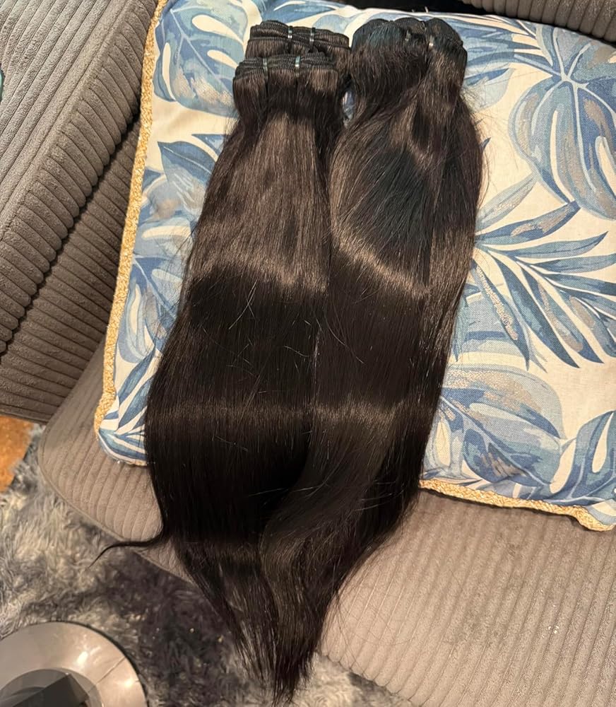 These straight bundles are everything I hoped for and more! The hair is super soft, thick from root to tip, and has a beautiful natural luster. I love how easily it blends with my natural hair and holds up well to heat styling. I’ve straightened and curled it with no issues—no burning smell, no shedding, and it stays smooth all day.The bundles were full, and I only needed 3 for a complete, voluminous look. Plus, there were no tangles even after multiple wears and washes. This hair is truly high quality and worth every penny. If you’re looking for that silky, bone-straight look with versatility, this is the one. I’ll definitely be ordering again!